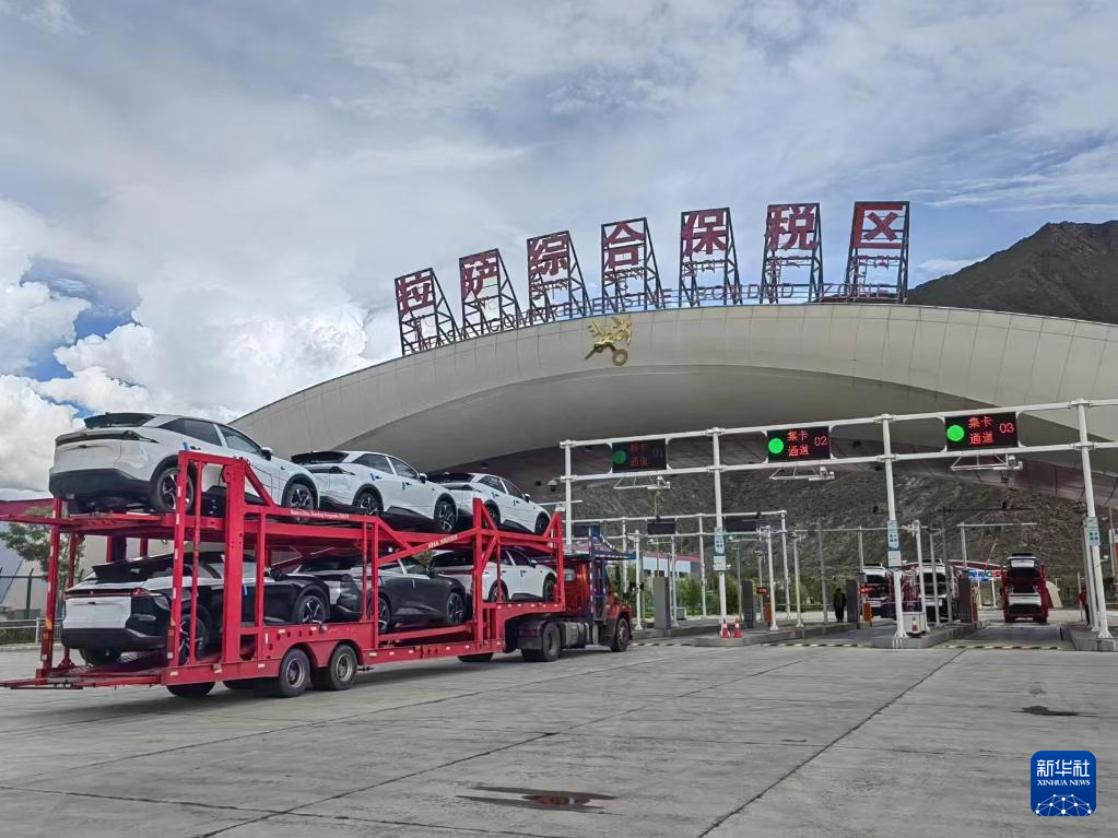 在西藏拉薩市西郊的綜合保稅區(qū),上千輛各色新能源汽車整齊排列,等待拖車運出綜保區(qū)?!斑@些汽車總價值約1.8億元,是‘新三樣’對尼泊爾出口的新突破?!崩_綜合保稅區(qū)管理委員會工作人員次仁曲宗說。