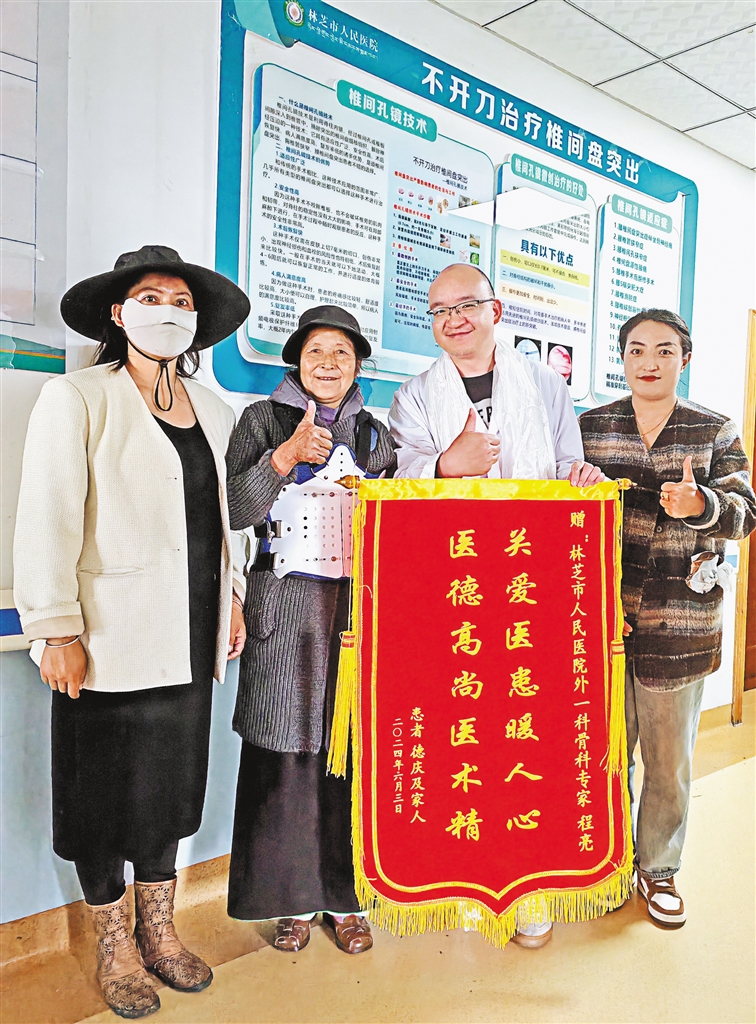圖為患者康復(fù)后為援藏醫(yī)生贈(zèng)送錦旗表達(dá)感謝。(圖片由林芝市人民醫(yī)院提供)