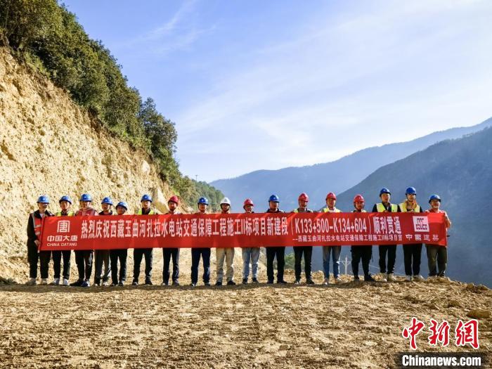 圖為扎拉水電站對(duì)外交通保障項(xiàng)目新建段道路順利貫通儀式現(xiàn)場。徐明朗 攝