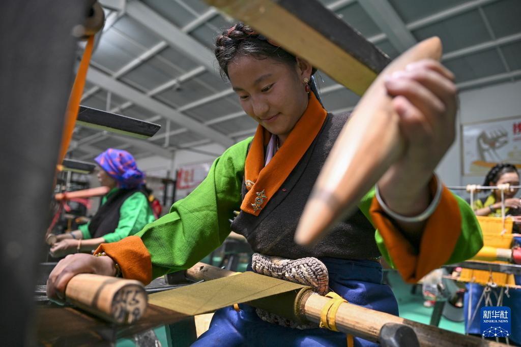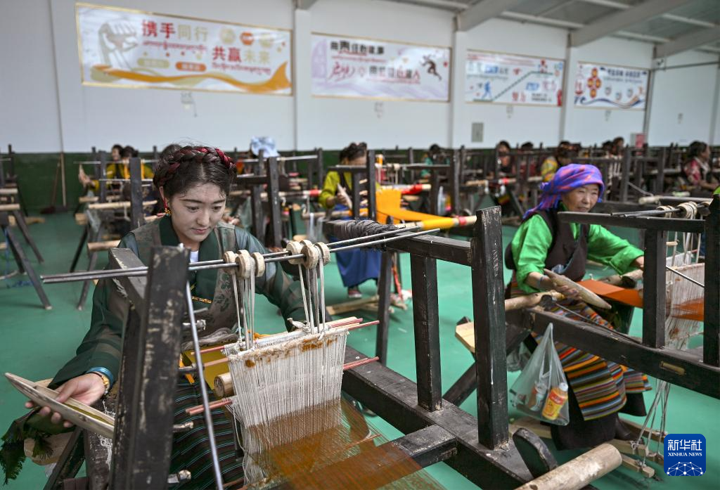 9月1日,在西藏日喀則市仁布縣特色產(chǎn)業(yè)孵化園,亞德細(xì)褐羊毛織品農(nóng)民專業(yè)合作社工作人員在車間里織布。新華社記者 孫瑞博 攝
