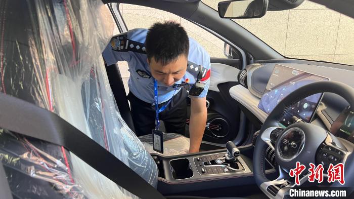 圖為吉隆出入境邊防檢查站執(zhí)勤二隊(duì)民警蔡生丁正在檢車(chē)出口車(chē)輛。姜磊 攝