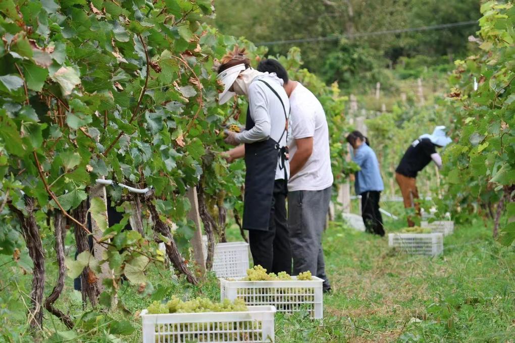 西藏芒康縣納西民族鄉(xiāng)葡萄成熟,農民正在采摘。(曲措 攝)