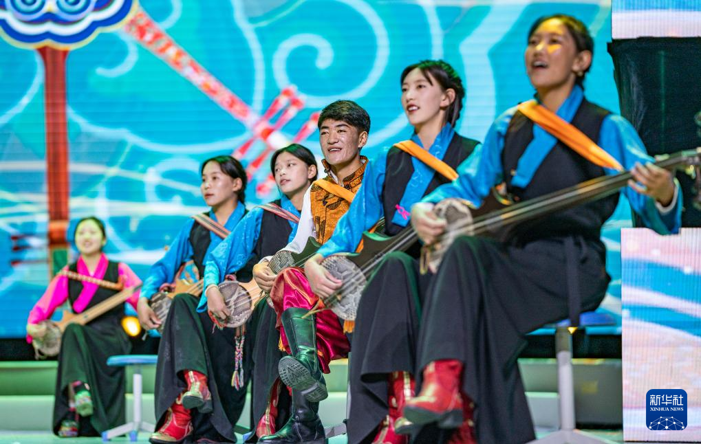 拉薩阿里河北完全中學(xué)的學(xué)生在表演節(jié)目(9月25日攝)。新華社記者 丁增尼達 攝