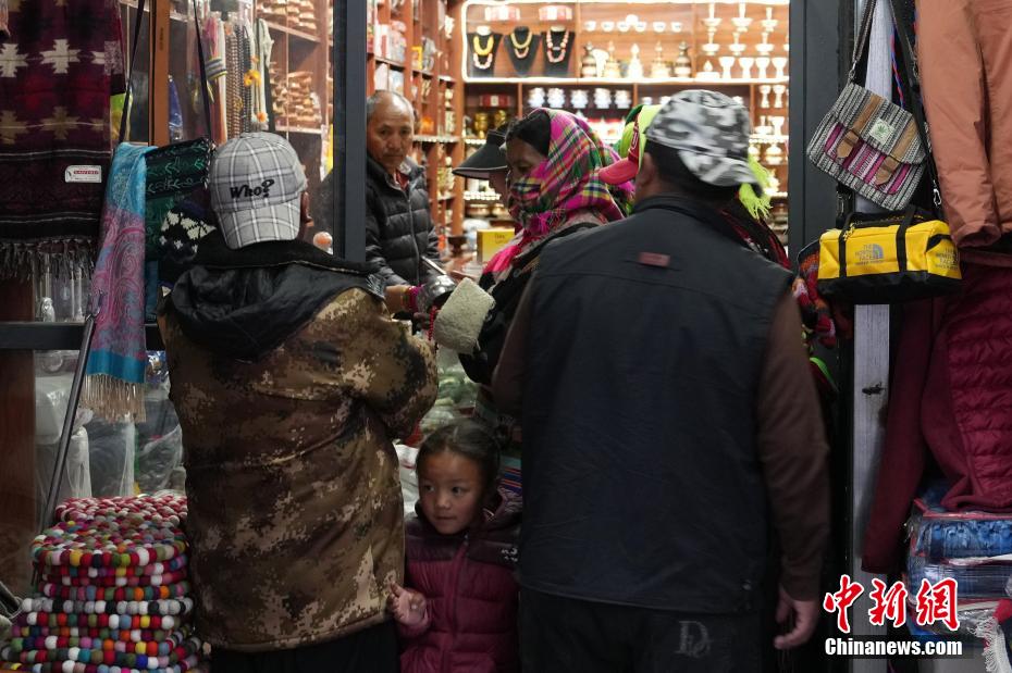9月30日,民眾在位于西藏阿里地區(qū)普蘭縣的唐噶邊貿市場選購商品。中新社記者 崔楠 攝