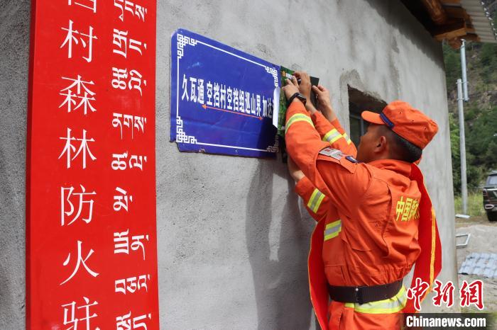 圖為張貼防火宣傳海報(bào)。察隅中隊(duì)供圖