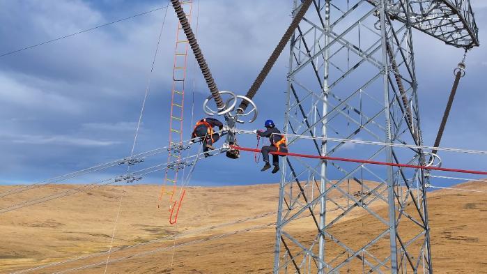 9月的林周,高原的陽光刺得睜不開眼。在走線現(xiàn)場,小組負(fù)責(zé)人扎西頓珠指揮兩名工作人員上塔進(jìn)行懸掛接地線,隨后,兩名走線人員頂著強(qiáng)烈的紫外線對(duì)2329號(hào)至2325號(hào)鐵塔開展線路走線工作,在走線過程中,他們認(rèn)真檢查導(dǎo)線有無磨損、斷股、嚴(yán)重銹蝕、外層損傷、零部件缺失等缺陷?,F(xiàn)場走線組負(fù)責(zé)人扎西頓珠向記者介紹“在高海拔、大溫差、強(qiáng)風(fēng)沙的氣候環(huán)境下,設(shè)備長期暴露在外,受到風(fēng)吹日曬雨淋,為精準(zhǔn)掌握設(shè)備狀況,每年年檢都要開展走線消缺工作?!?/p>