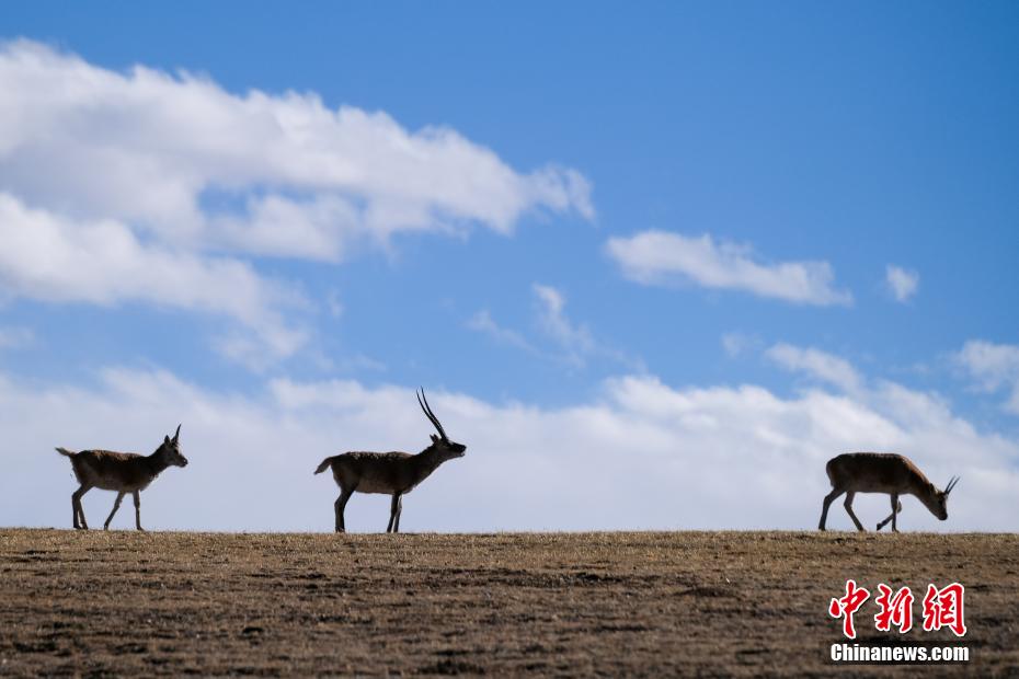 探訪西藏羌塘草原:藏羚羊等野生動(dòng)物悠閑覓食