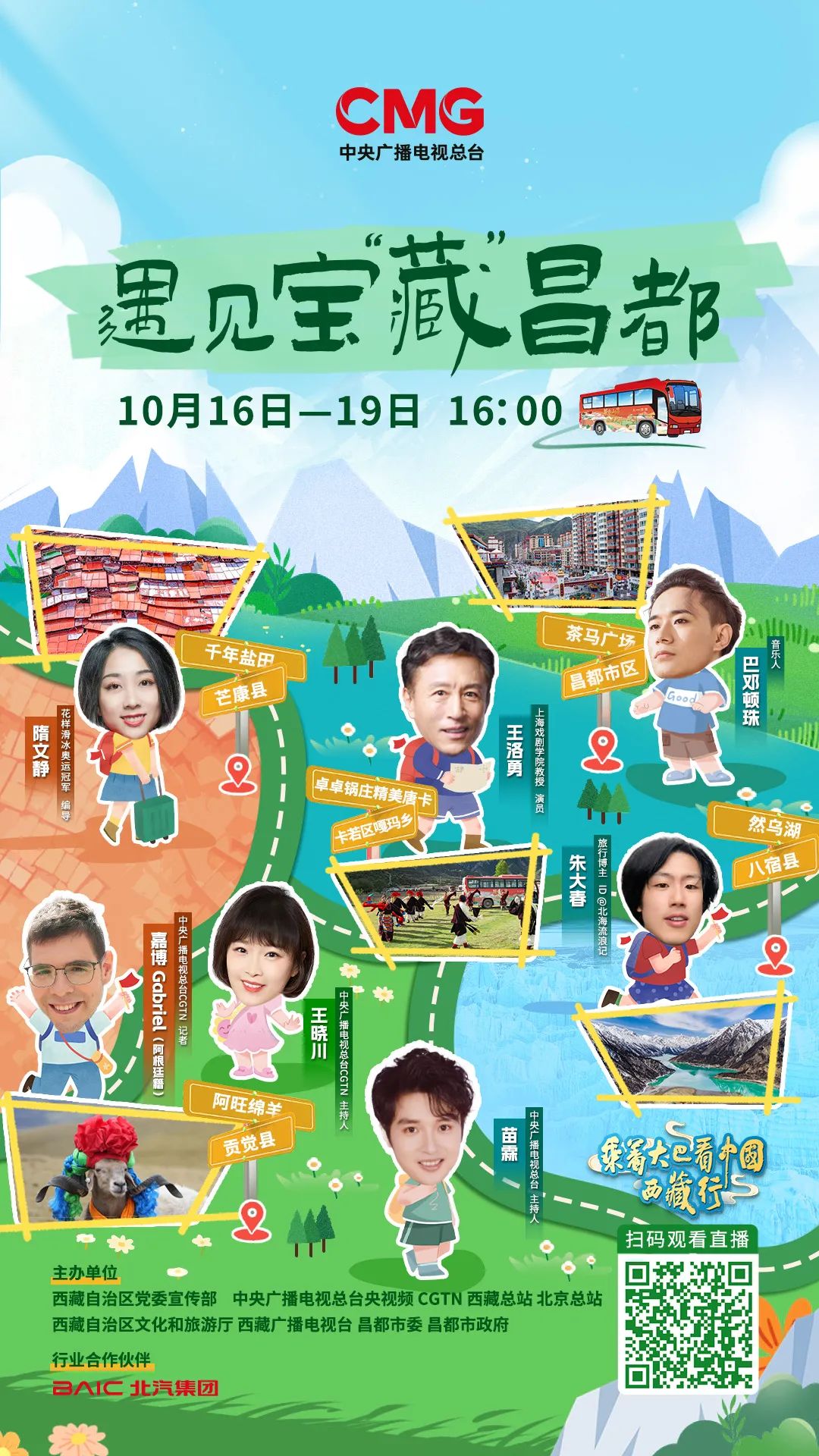 10月16日至10月19日,“跨越山海 格?;ㄩ_——乘著大巴看中國 西藏行”大型融媒體活動播出,總臺大巴車開進(jìn)西藏昌都,自芒康過貢覺,經(jīng)卡若到八宿,海拔從2300米一路攀升,探訪團(tuán)深入千年鹽田,探秘萬年冰川,品嘗原生態(tài)的“阿旺綿羊”,領(lǐng)略中國民間文化藝術(shù)之鄉(xiāng)——嘎瑪鄉(xiāng)的風(fēng)采,多彩的地貌風(fēng)光與璀璨的藏東文化,盡顯昌都文化魅力。本次活動由西藏自治區(qū)黨委宣傳部、中央廣播電視總臺央視頻、CGTN、西藏總站、北京總站和西藏自治區(qū)文化和旅游廳、西藏廣播電視臺、昌都市委市政府聯(lián)合主辦。