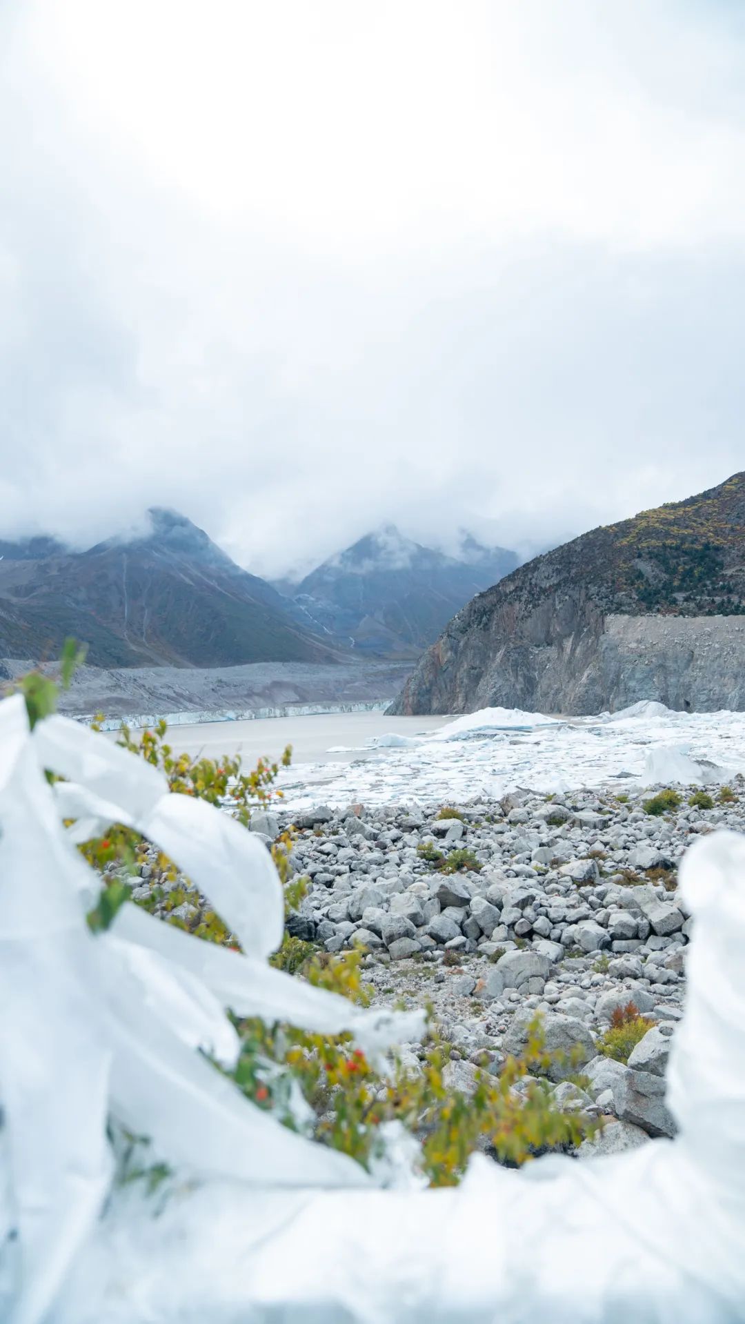 在八宿來古村,環(huán)顧四周可見至少6條冰川,統(tǒng)稱來古冰川群。冰川從海拔6600多米的山峰一路傾瀉至海拔4000米左右,站在它寬闊的冰體之上,猶如穿越到冰河世紀(jì)。當(dāng)我們站在陽光照耀下絕美的天然藍(lán)冰洞里,仿佛穿越進(jìn)童話之中。當(dāng)日頭漸漸落下,在然烏湖畔,萬丈金光從天而降照射在雪山之巔,一幅“日照金山”之景就此“繪制”完成。