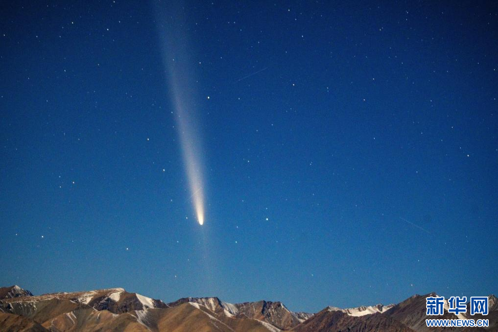 10月13日,拍攝于羊卓雍措1號(hào)觀景臺(tái)的彗星。新華網(wǎng)發(fā) 范禹杰 攝