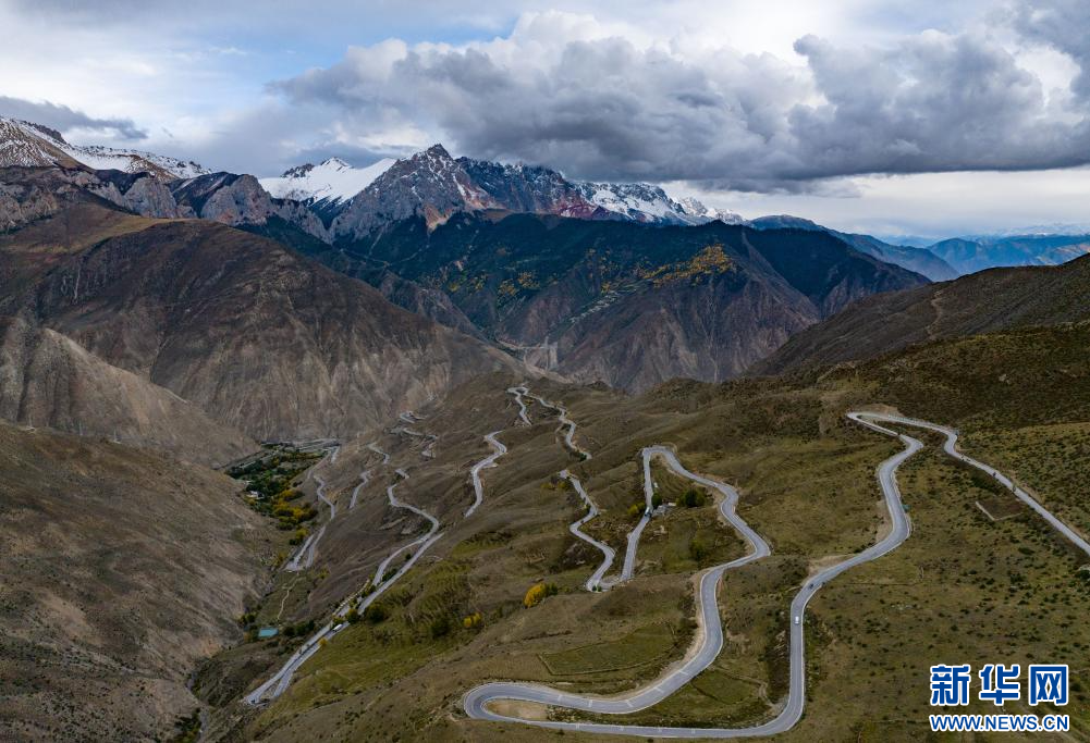 10月13日拍攝的川藏公路“怒江72拐”(無(wú)人機(jī)照片)。該處位于昌都市八宿縣境內(nèi),是318國(guó)道川藏線(xiàn)上一段艱險(xiǎn)與美景并存的山路。新華網(wǎng) 旦增努布 攝