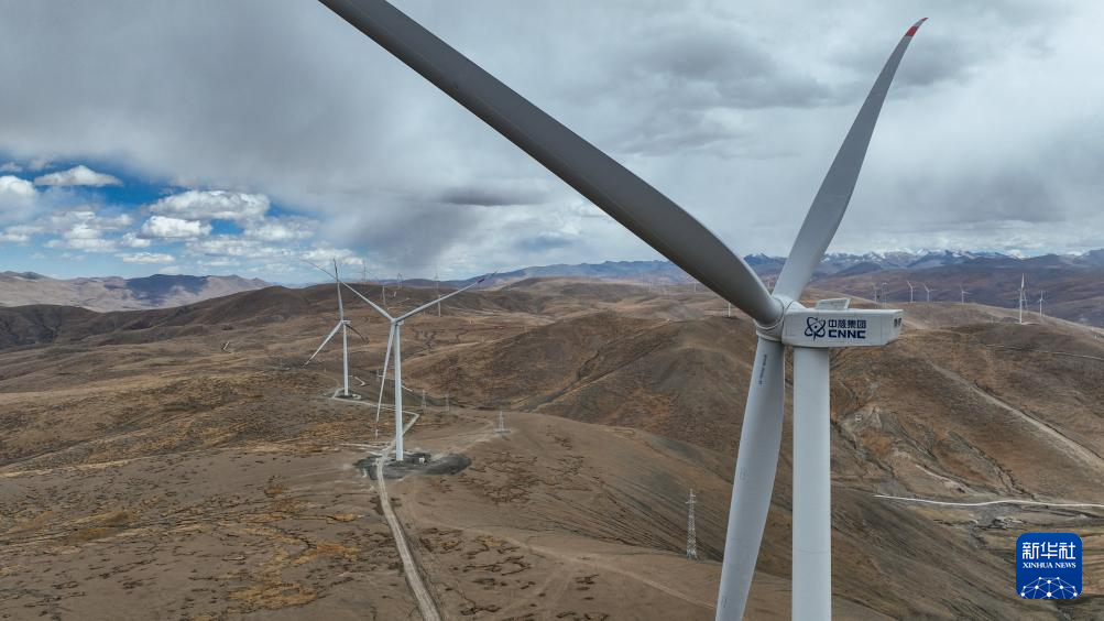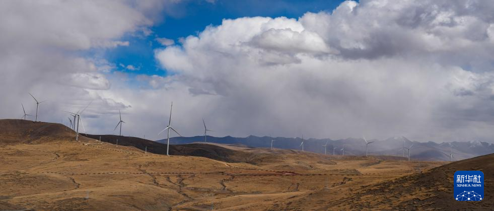 10月17日拍攝的位于西藏日喀則市薩迦縣的風力發(fā)電機組。新華社記者 晉美多吉 攝?