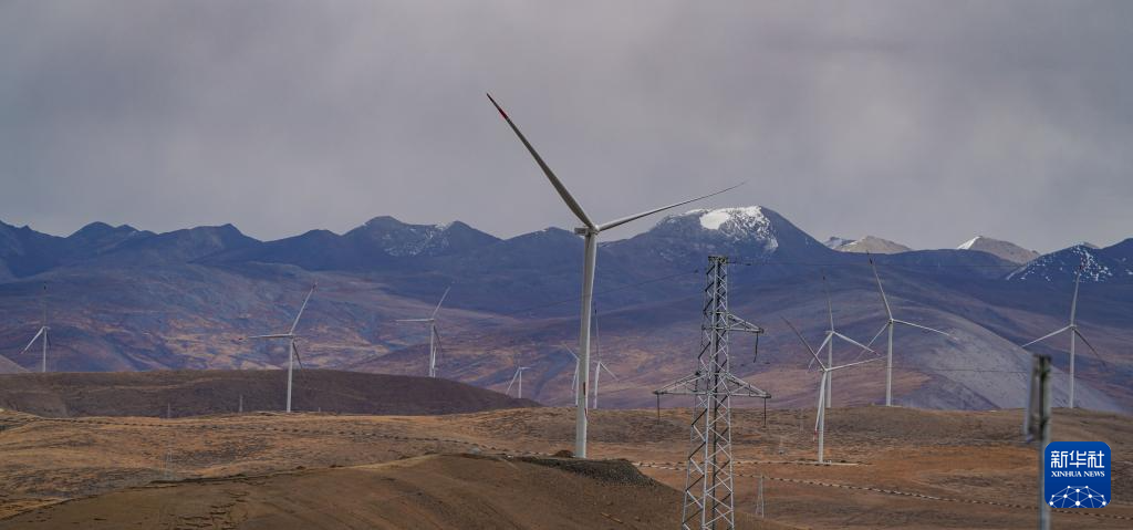 10月17日拍攝的位于西藏日喀則市薩迦縣的風力發(fā)電機組。新華社記者 晉美多吉 攝??