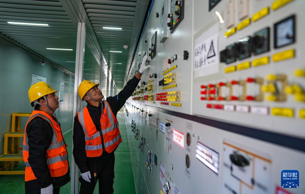 10月17日,工作人員在檢查35千伏開關柜。新華社記者 晉美多吉 攝?