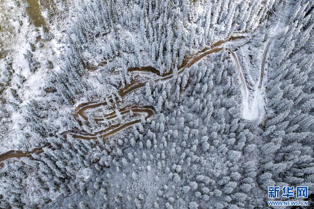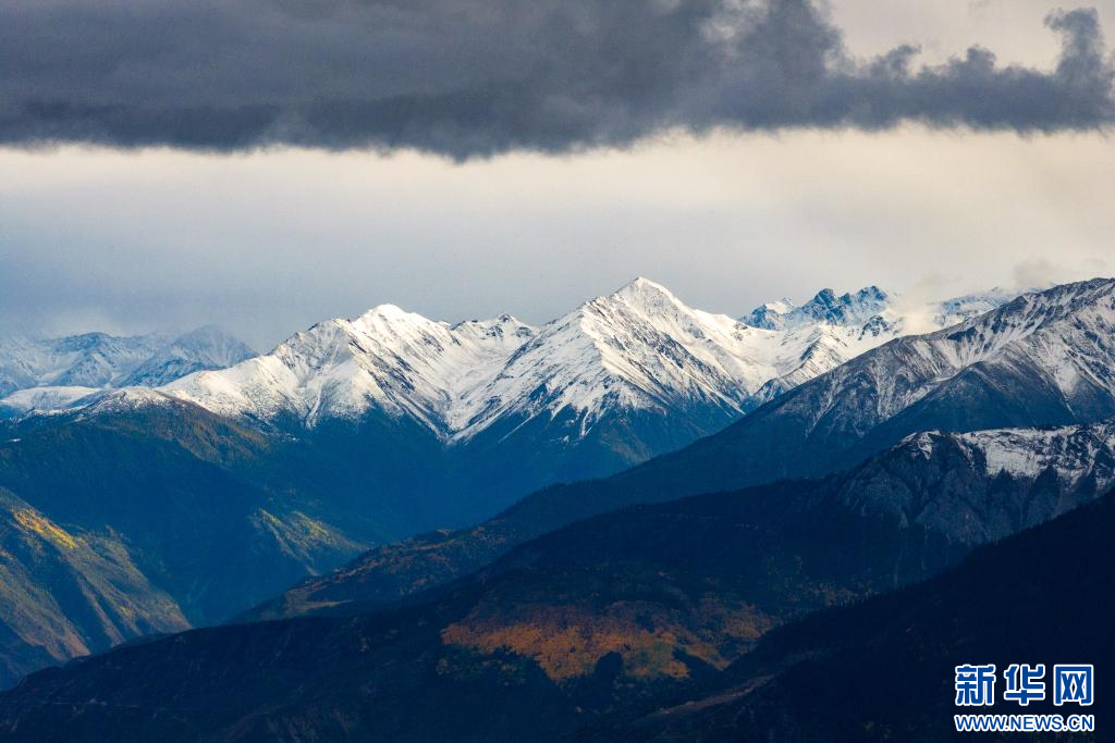 10月13日,在西藏昌都市八宿縣境內(nèi)川藏公路沿途拍攝的雪山(無人機(jī)照片)。新華網(wǎng) 旦增努布 攝