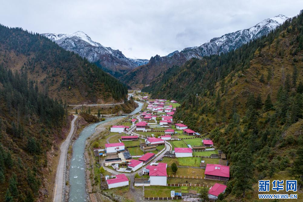 10月21日拍攝的“西藏解放第一村”昌都市江達(dá)縣崗?fù)写宀厥綐欠浚o人機(jī)照片)。新華網(wǎng) 旦增努布 攝