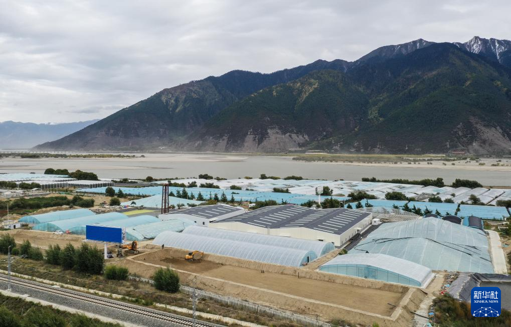 在西藏林芝市米林農(nóng)場內(nèi)的粵林高原漁業(yè)科技園,依托當(dāng)?shù)赜欣h(huán)境而興建的養(yǎng)殖育種基地初顯規(guī)模(無人機照片,10月24日攝)。新華社記者 李賀 攝