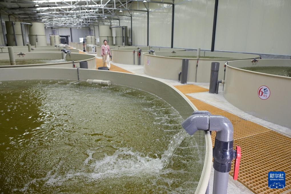 這是在西藏林芝市米林農(nóng)場的粵林高原漁業(yè)科技園育苗廠房內(nèi)拍攝的育苗水池(10月24日攝)。新華社記者 李賀 攝