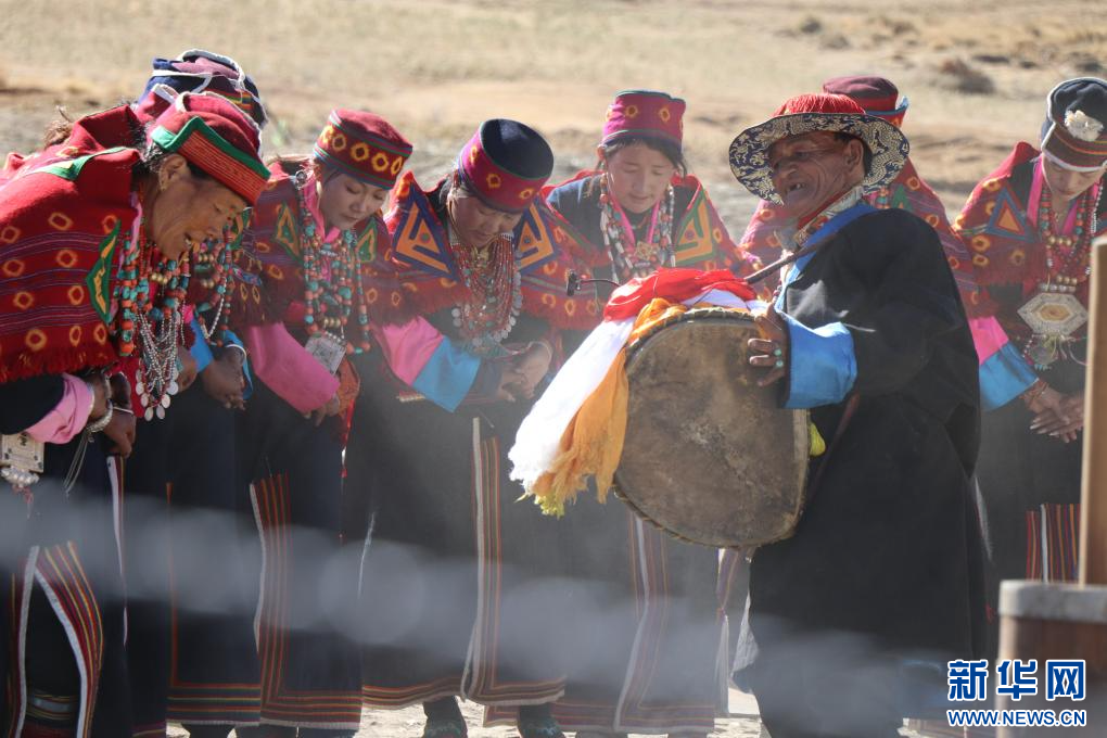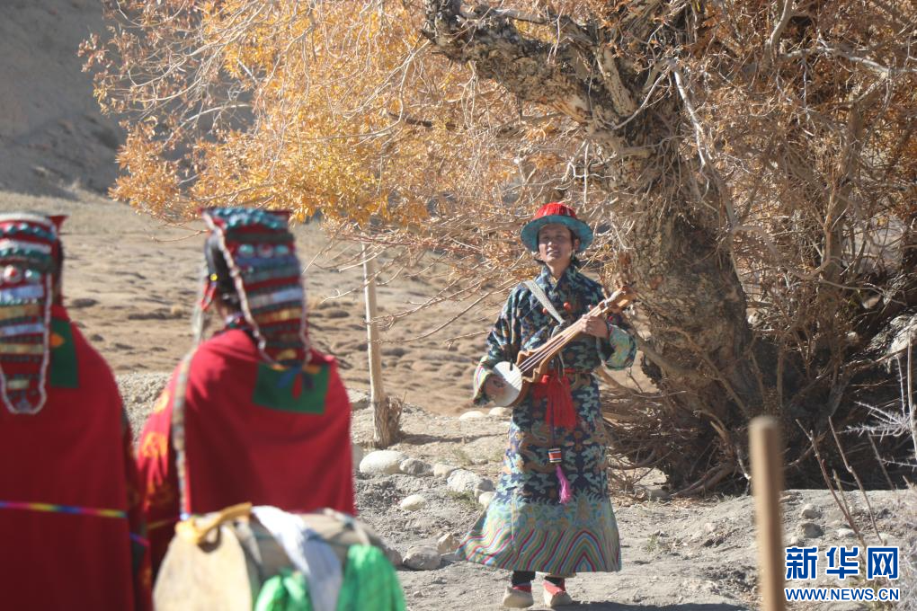 這是樂手格瑪扎西群覺身著傳統(tǒng)服飾進行表演。新華社 發(fā)