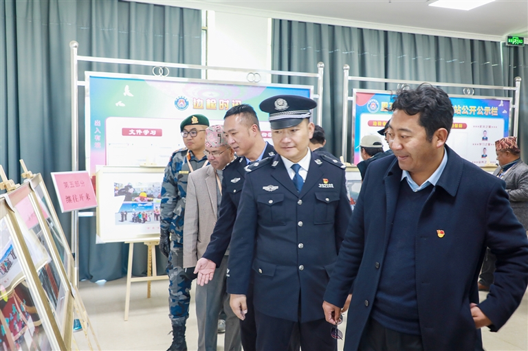 中尼雙方參加里孜口岸通關(guān)一周年慶典主要領導參觀里孜邊檢一周年成果展。