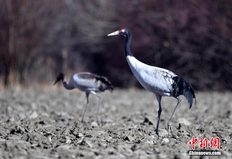 黑頸鶴是全球十五種鶴類中唯一在高原地區(qū)繁殖和越冬的鶴類,有著“高原精靈”之稱,屬中國國家一級保護(hù)動(dòng)物。位于雅魯藏布江與年楚河交匯處的西藏日喀則市桑珠孜區(qū)邊雄鄉(xiāng)有著廣袤的農(nóng)田和濕地,是黑頸鶴的主要越冬地之一。圖為11月20日,黑頸鶴在西藏日喀則市桑珠孜區(qū)邊雄鄉(xiāng)農(nóng)田內(nèi)覓食。