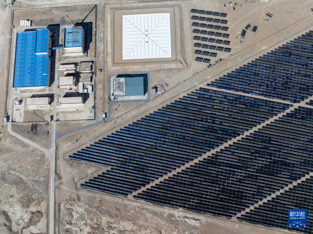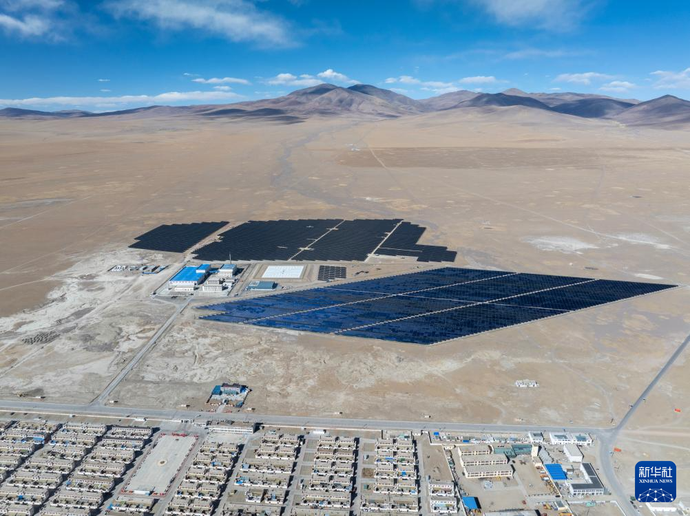 鳥瞰措勤縣城區(qū)清潔能源集中供暖特許經(jīng)營項(xiàng)目的光伏陣列(無人機(jī)照片,11月20日攝)。新華社記者 姜帆 攝