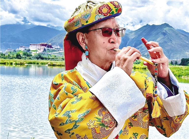 交談中,時間仿佛回到了1963年。當(dāng)時年僅13歲的次旦由國家民委招生,被保送到北京的中央民族學(xué)院,開始系統(tǒng)學(xué)習(xí)民族器樂專業(yè),專攻竹笛演奏,從此走上了藝術(shù)之路?!拔覀円黄鹑ケ本W(xué)習(xí)的共有24人,當(dāng)時大家年紀(jì)還小,不知道去北京學(xué)習(xí)意味著什么,后來才慢慢了解到我們身上承擔(dān)著藏族民族器樂的傳承與推廣的責(zé)任,所以大家都很刻苦地學(xué)習(xí)和訓(xùn)練?!贝蔚┱f。
