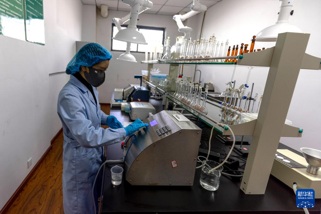 11月28日,質(zhì)量檢測人員桑吉在實(shí)驗(yàn)室檢測產(chǎn)品質(zhì)量。新華社記者 姜帆 攝