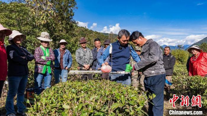 圖為技術(shù)專家詳細講解茶樹修剪的科學(xué)方法。墨脫縣人力資源和社會保障局供圖