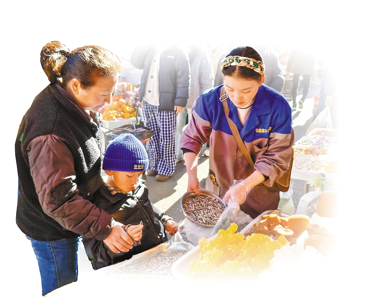 過新年,置辦年貨是不可或缺的一環(huán),它飽含了人們對收獲的喜悅和對生活的熱愛。新年前幾天,大家都在忙著置辦過年所需物資,林芝市各大年貨市場熙熙攘攘,牦牛肉、酥油、奶渣、糌粑、青稞酒等各式年貨琳瑯滿目,人們手上提著大包小包穿梭在年貨攤位前,處處洋溢著節(jié)日的喜慶氛圍。