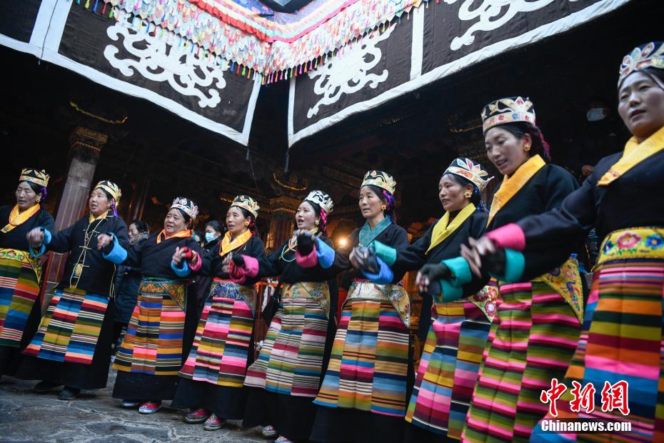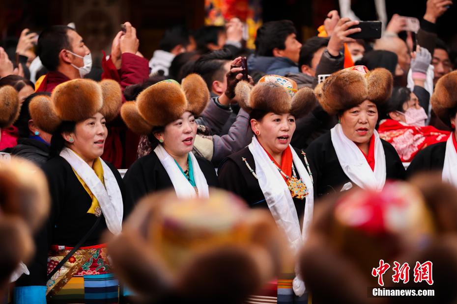 12月15日即藏歷十月十五日是藏族傳統(tǒng)的節(jié)日“白來日追”,俗稱“仙女節(jié)”、“白拉姆節(jié)”等。相傳藏傳佛教最高護法神之一班丹拉姆的女兒白拉姆,不顧母親的反對與赤尊贊私定終身,班丹拉姆一怒之下將赤尊贊趕到拉薩河南岸,規(guī)定二人僅每年的藏歷十月十五日相見。圖為身著民族服裝的信眾在大昭寺內(nèi)載歌載舞。