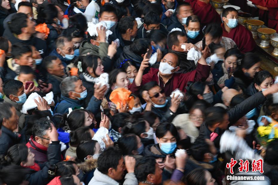 12月15日即藏歷十月十五日是藏族傳統(tǒng)的節(jié)日“白來日追”,俗稱“仙女節(jié)”、“白拉姆節(jié)”等。相傳藏傳佛教最高護法神之一班丹拉姆的女兒白拉姆,不顧母親的反對與赤尊贊私定終身,班丹拉姆一怒之下將赤尊贊趕到拉薩河南岸,規(guī)定二人僅每年的藏歷十月十五日相見。圖為工作人員將青稞酒倒入女神白拉姆像前的酒壇。