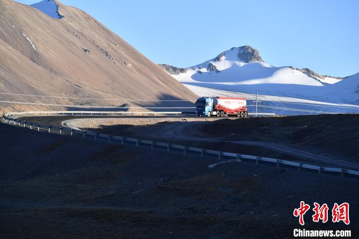 圖為運輸車輛行駛在青藏公路上?!∝暣_ 攝