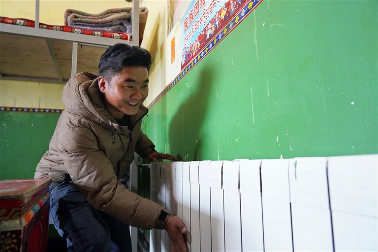 措勤縣完全小學(xué)生活老師旦珍檢查學(xué)校供暖設(shè)備。