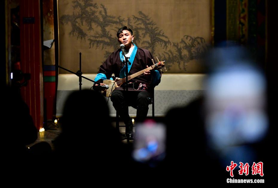 12月23日晚,西藏拉薩吉本崗藝術(shù)中心舉行吉光之夜活動(dòng)。朗瑪堆諧、扎木念彈唱、熱巴舞等非遺展演,吸引眾多民眾共同領(lǐng)略西藏非物質(zhì)文化遺產(chǎn)的無(wú)窮魅力。圖為扎木念彈唱《甲林賽》。中新社記者 李林 攝
