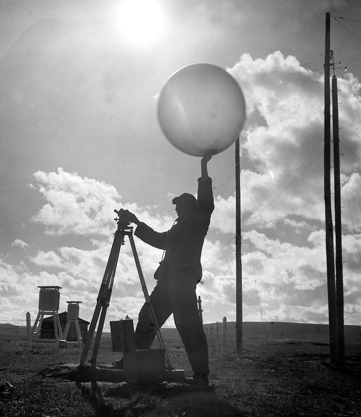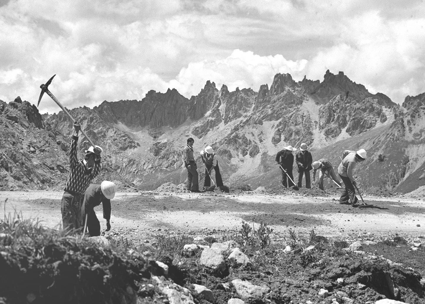1964年,五道梁氣象服務(wù)站的工作人員放測(cè)風(fēng)氣球。在昆侖山里工作的氣象工作者,長期堅(jiān)守工作崗位,為青藏公路安全運(yùn)輸提供了寶貴的氣象資料。