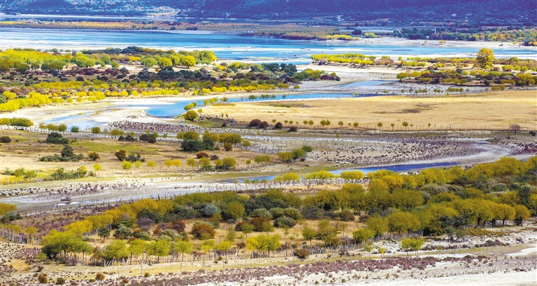 在雅尼國家濕地公園,記者見到來自廣西的游客蔡歡,“沒想到林芝有這么一片豐富濕地,令我驚喜,我要去濕地里拍越冬鳥類。”他說。與蔡歡不同的是,在爭相“打卡”留影的人群中,林芝市林芝鎮(zhèn)立定村村民白瑪喬也在拍照,與游客不同,她拍的是動物行蹤、植被狀況,防止非法盜捕、違規(guī)采砂。作為雅尼國家濕地公園管護(hù)員白瑪喬對雅尼濕地公園變化看在眼里?!昂喍灾褪撬膫€字——天翻地覆”。立定村靠近雅尼國家濕地公園。過去,這一帶植被稀疏,雨季過后,隨著水位下降,黃沙飛揚(yáng)?!扒囡锞驮谘沤叄钜粫?,頭發(fā)、鼻孔里都是沙子?!卑赚攩袒貞浀?。