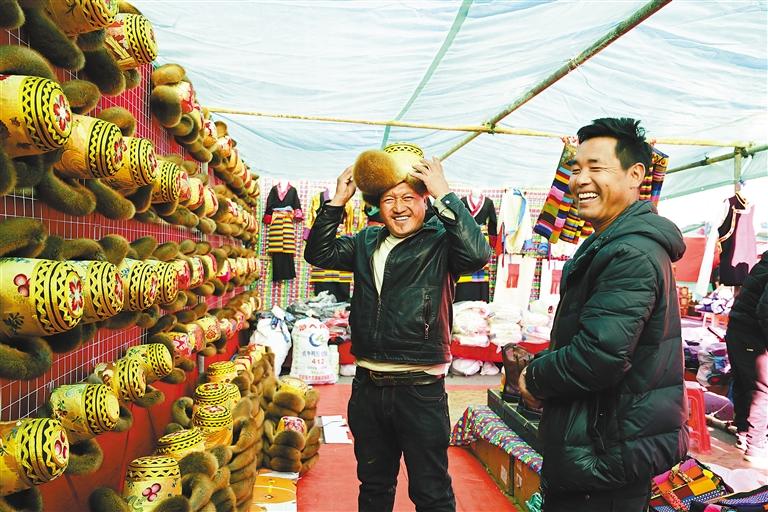 為何如此熱鬧?原來這里是體驗(yàn)周的“重頭戲”——冬季物資交流會(huì)。現(xiàn)場,從服裝服飾到農(nóng)特產(chǎn)品,從肉類食品到民族手工藝品,應(yīng)有盡有,可滿足不同消費(fèi)者的需求。