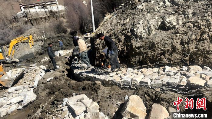 圖為工作隊(duì)組織人員加固吐如雄村灌溉水池。工作隊(duì) 供圖