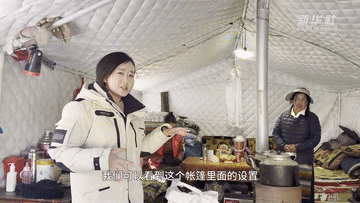 采訪中,記者走進(jìn)一間帳篷進(jìn)行探訪。在帳篷內(nèi)可以看到灶具、水桶、廚具、爐子,還有藏式沙發(fā)、桌子,甚至還有電視。據(jù)女主人介紹,地震發(fā)生后,老百姓領(lǐng)到了被子、泡面、饅頭、菜、肉、燃料等救災(zāi)物資。