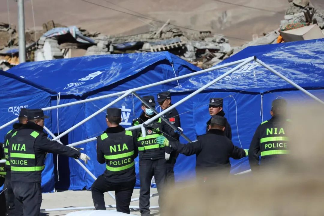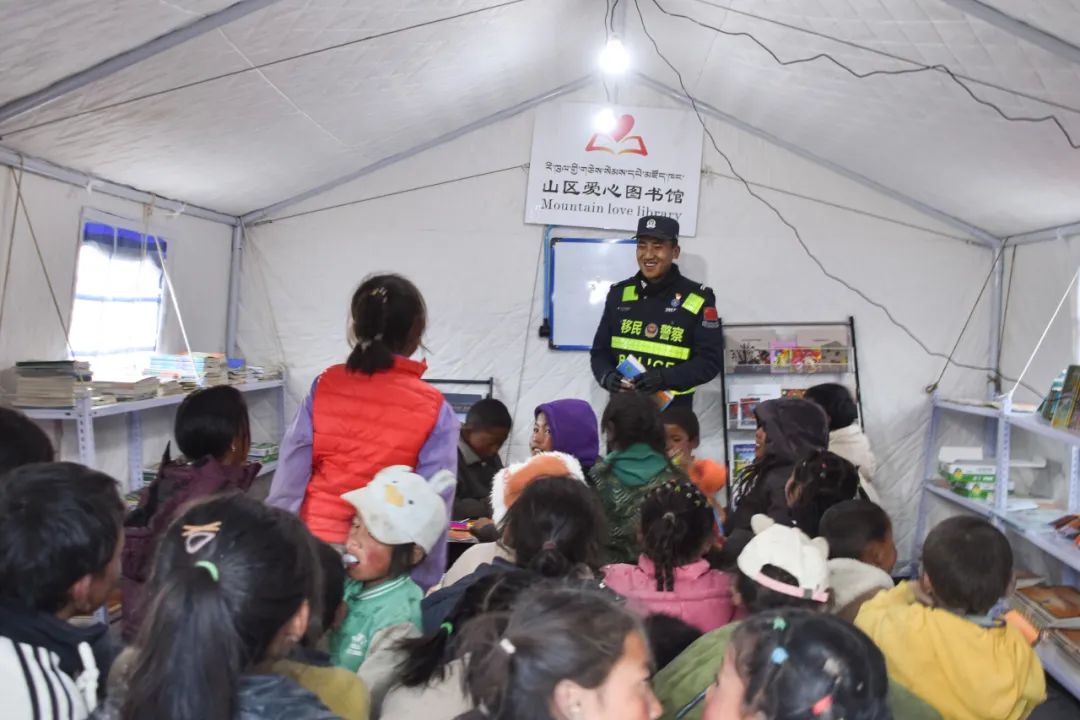地震發(fā)生后,西藏邊檢總站日喀則邊境管理支隊(duì)救援民警不知疲倦地奔走在震中3個(gè)受損嚴(yán)重的村莊,了解震后群眾生產(chǎn)生活情況,協(xié)助解決面臨的各種困難問題。面對240頂帳篷,230戶1200余名災(zāi)民,民警們組建了抗震救災(zāi)雜村、嘎布村和玉白村臨時(shí)警務(wù)室,配備警力30人,實(shí)行24小時(shí)勤務(wù)模式,主要承擔(dān)交通疏導(dǎo)、宣傳教育、隱患排查、秩序維持、輔導(dǎo)功課、協(xié)助地方開展其他救援等任務(wù),同時(shí)設(shè)置常用藥箱,方便群眾用藥需求,被群眾親切地稱為“建在身邊的派出所”。