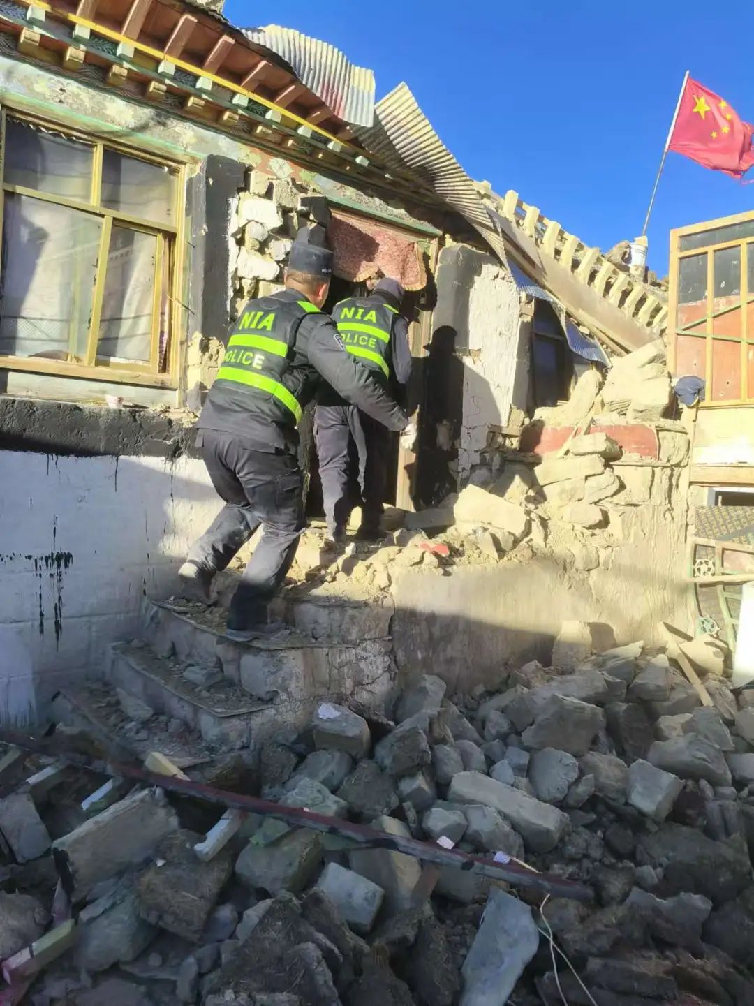 民警在得知情況后,第一時(shí)間了解次仁多布杰房屋的受災(zāi)情況,在確認(rèn)無二次坍塌情況下,請示上級領(lǐng)導(dǎo),經(jīng)同意后,協(xié)調(diào)雜村村委會(huì)、雜村安置區(qū)負(fù)責(zé)人員前往村民次仁多布杰家里幫助戶主搶救貴重財(cái)產(chǎn),18時(shí)39分,次仁多布杰屋內(nèi)貴重物品全部轉(zhuǎn)移完畢,救援民警才撤離現(xiàn)場。這仿佛在傳遞著一種無聲的力量:有我們在,別害怕。