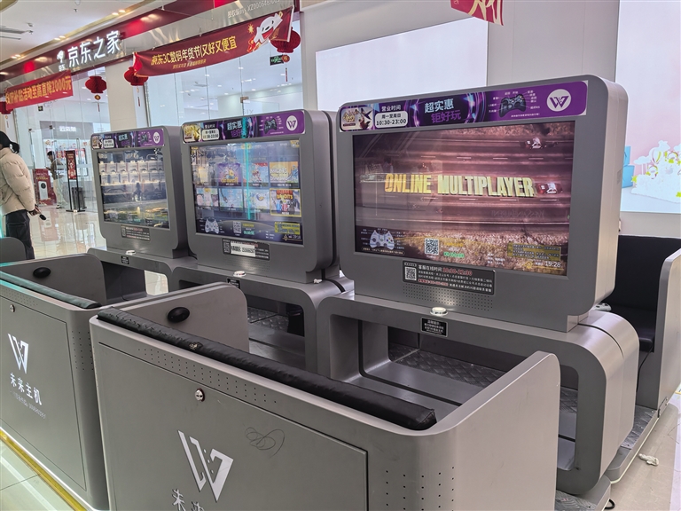 在拉薩市城關(guān)區(qū)北城新天地購(gòu)物中心,一排自助游戲機(jī)吸引了記者的注意。這些游戲機(jī)配備了皮質(zhì)沙發(fā)和寬大屏幕,還有經(jīng)典游戲手柄,瀏覽屏幕可以發(fā)現(xiàn)《街頭霸王》《荒野大鏢客》《實(shí)況足球》《JUMP FORCE》等熱門(mén)游戲。通過(guò)掃描屏幕上的二維碼,即可選擇不同的充值套餐,即:15分鐘18至20元,30分鐘28至30元,一個(gè)小時(shí)48至50元,兩個(gè)小時(shí)68至70元。部分游戲機(jī)還有充卡額外贈(zèng)送金額的套餐活動(dòng),贈(zèng)送金額從30至500元不等。