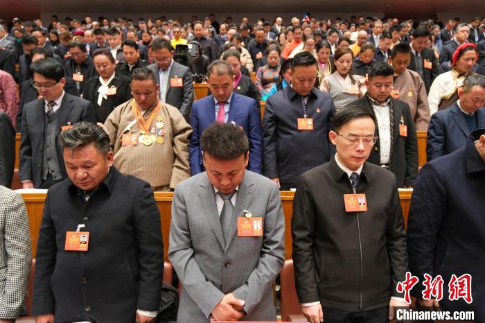 當日開幕式上,西藏自治區(qū)人大代表和列席的政協(xié)委員集體為定日縣地震遇難同胞默哀。