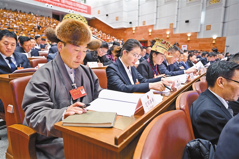 19日上午,自治區(qū)十二屆人大三次會(huì)議在拉薩開幕。圖為代表們認(rèn)真聆聽政府工作報(bào)告。記者 旦增西旦 攝