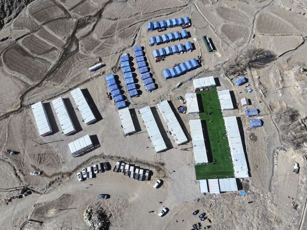 1月28日,定日縣長所鄉(xiāng)古榮村安置點,所有受災(zāi)群眾已搬入板房(無人機(jī)照片)。新華社記者 洛卓嘉措 攝