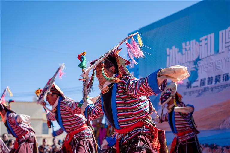 活動在浪卡子縣打隆鎮(zhèn)推瓦村舉辦。普莫雍錯冬季封凍后,會形成如夢如幻的幽藍(lán)冰面,因此被贊譽為“中國貝加爾湖”。每年2月前后,當(dāng)湖面完全冰封,推瓦村村民便會集結(jié)羊群,趕著它們踏上冰面,前往湖心島過冬,這一延續(xù)千年的冰上趕羊傳統(tǒng),承載著深厚的歷史文化底蘊。