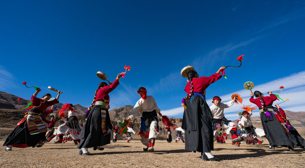 如今,熱巴舞不僅是節(jié)慶活動的“標配”,更在全國各地綻放光彩。高原的陽光下,鼓聲依舊鏗鏘。阿尼站在場邊,看著年輕舞者飛揚的衣袂,布滿皺紋的臉上露出了欣慰的笑容。
