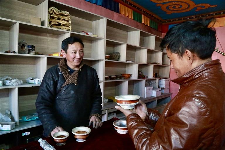 43歲的次央多吉是墨竹工卡縣級(jí)非物質(zhì)文化遺產(chǎn)阿吉祖玉傳承人。這份傳承的使命,自他的祖輩起便已延續(xù)。在他的記憶中,長輩們熟練掌握這項(xiàng)非遺技藝的身影,深深烙印在他的心中。“阿吉祖玉是祖先傳下來的東西,不能丟?!北е@樣堅(jiān)定的想法,次央多吉在年少時(shí)便立下決心,要將這門技藝傳承下去,并不斷發(fā)揚(yáng)光大。
