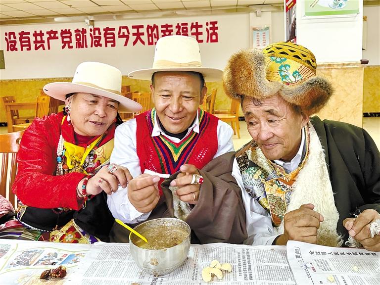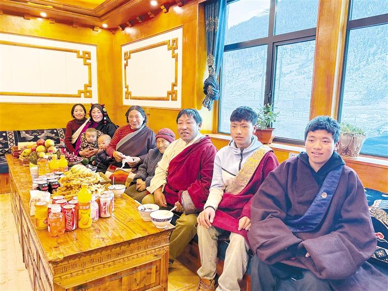 60歲的多吉大爺放牧歸來,推開家門,“古突”的香氣瞬間將疲憊驅散。“都到齊啦,吃‘古突’嘍!”大兒子格桑多吉一邊招呼,一邊給家人盛上“古突”。房間里,歡聲笑語不斷,處處充滿溫情。